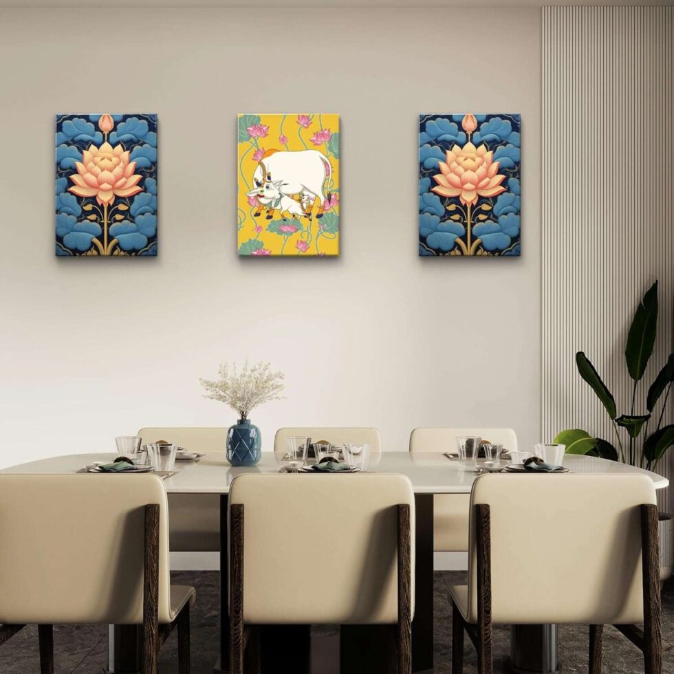 A harmonious blend of traditional artistry and modern design, this wall painting adds cultural richness to any space.